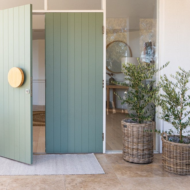 Bates is an Ivory / Off White colour that suits both indoor and outdoor spaces. They have a durable flat weave for low door clearance.