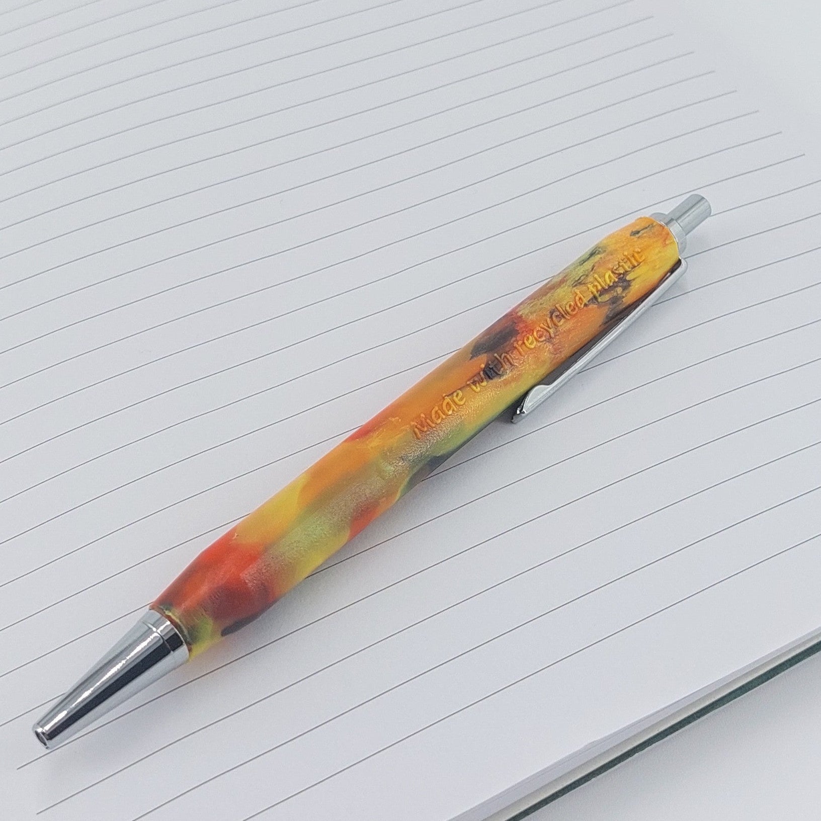 Introducing our eco-friendly retractable pens, made from recycled plastic derived from drink bottle caps.