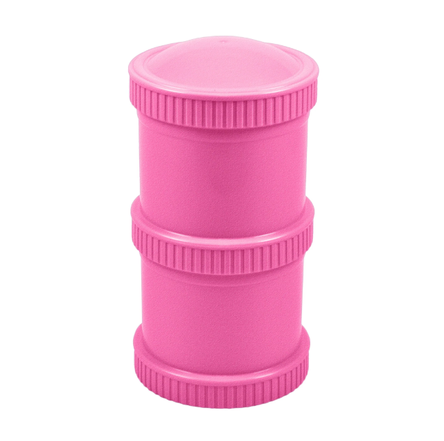 Perfect for storing baby formula, fruits, crackers, nuts, popcorn and all other tasty snacks when you are out and about, these Re-Play Snack Stacks can also be used for small toys or Lego (or the endless treasures kids collect!) to take out with you and keep safe. Each pod screws into the bottom of another so you can extend your stack by adding another set and there's no extra fumbling in your bag for different containers.